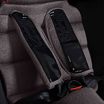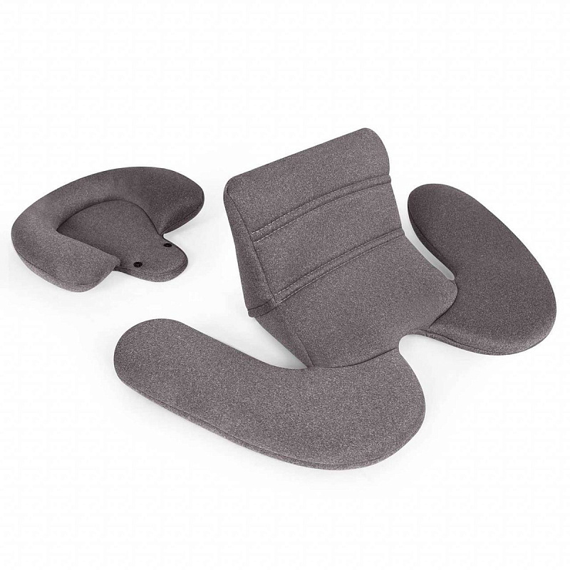 Мягкая тканевая обивка из меланжа с толстым слоем поролона и элементами из эко-кожи обеспечивает удобство малыша, а дополнительные вкладыши, накладки на ремни с дополнительным противоскользящим слоем, и подушка под голову с валиком-позиционером позволяют обеспечить ему безопасное и комфортное положение.