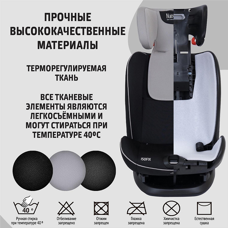 Детское автокресло Nuovita Maczione N123i-2 рассчитано на детей в возрасте с 9 месяцев до 12 лет (вес от 9 до 36 кг) и соответствует европейскому стандарту безопасности ECE R44/04. Это модель универсального типа, которая охватывает 1/2/3 возрастные группы. Устройство предлагает высокий уровень безопасности и комфорта: обеспечивает защиту при боковом ударе, для длительных поездок снабжено регулировкой сиденья, учитывающей физиологию ребенка. Изготовлено из высококачественных материалов и подходит для большинства автомобильных сидений.