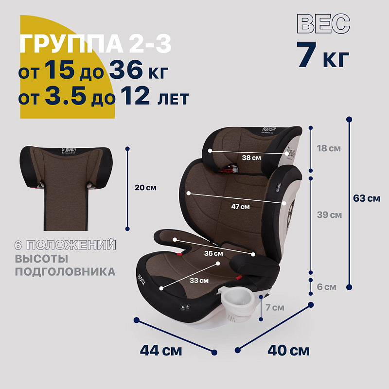 Nuovita Автокресло Maczione N23i-1 предназначено для детей от 3.5 до 12 лет (весом от 15 до 36 кг). Это удерживающее устройство универсального типа охватывает две возрастные группы (2/3) и может трансформироваться в бустер. Крепление на скобы Isofix гарантирует отсутствие ошибок при установке, и в комплексе со штатным ремнем безопасности обеспечивает высокую степень защиты. Эргономичная конструкция и высококачественные материалы — залог того, что ребенку будет комфортно во время поездки.
