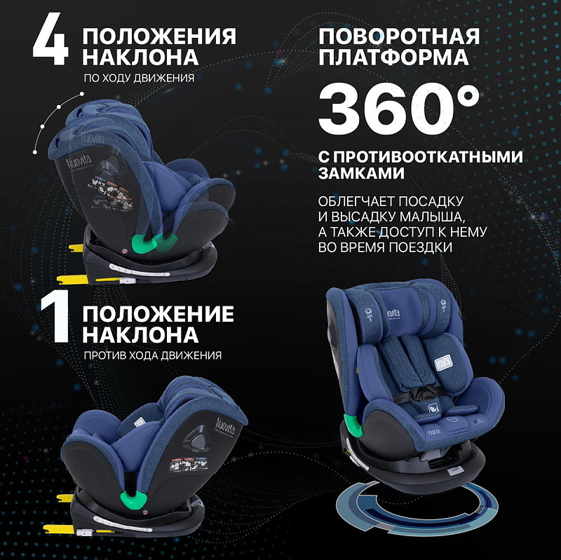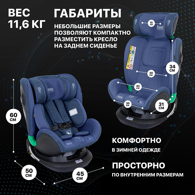 Детское автокресло Nuovita Maczione NiS2-1 предназначено для детей с рождения до 12 лет (рост 40-135 см, группа 0+/1/2/3). Это усовершенствованное детское удерживающее устройство, которое обеспечит ребенку максимальную защиту, поскольку изготовлено в соответствии с европейским стандартом I-Size. Эффективный поворотный механизм, широкие возможности регулировки подголовника и наклона сиденья — залог того, что поездка будет сопровождаться высоким уровнем комфорта. Подходит для автомобилей с Isofix.