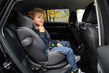 Поворот автокресла на 360° одной рукой. Вращающаяся на 360° встроенная база упрощает размещение и пристегивание ребенка. Благодаря удобной поворотной системе автокресло легко установить по ходу и против хода движения, не снимая его с креплений.