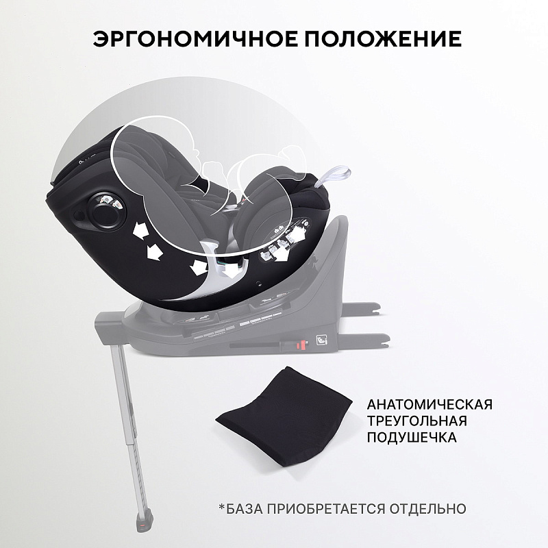 в пару к автокреслу приобретается поворотно-выдвижная база isofix с телескопической опорной ногой, увеличивающей устойчивость. Вращение базы (360°) обеспечивает максимально комфортную установку автокресла (по ходу/против хода) и легкий доступ к ребенку (если развернуть ребенка лицом к двери). Также база дополнена выдвижной системой для еще более быстрого и удобного доступа к ребенку (автокресло можно выдвигать при повороте на 90°).
