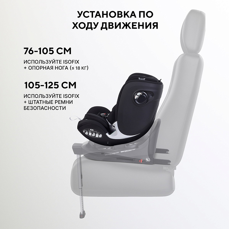 автокресло растет вместе с маленьким пассажиром. Подходит детям с рождения и до 7-8 лет (от 40 см до 125 см): до 1,5 лет установка против хода движения, после 1,5 лет установка по ходу движения