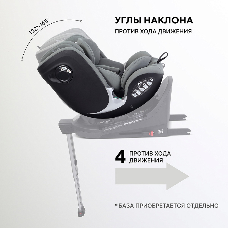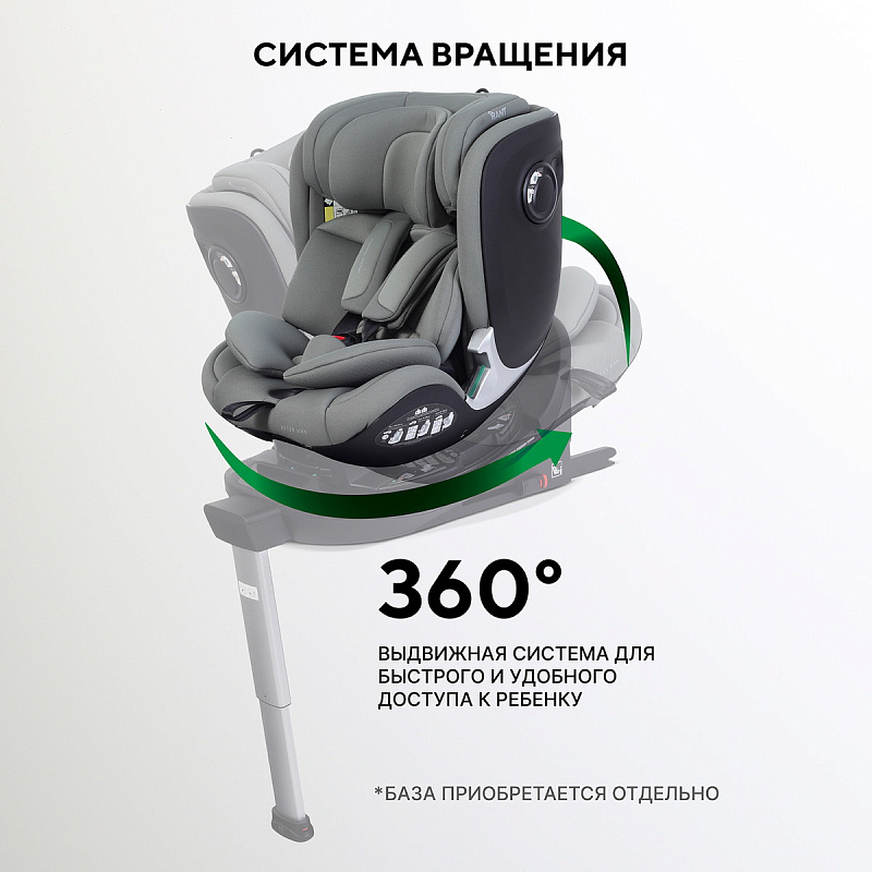 в пару к автокреслу приобретается поворотно-выдвижная база isofix с телескопической опорной ногой, увеличивающей устойчивость. Вращение базы (360°) обеспечивает максимально комфортную установку автокресла (по ходу/против хода) и легкий доступ к ребенку (если развернуть ребенка лицом к двери). Также база дополнена выдвижной системой для еще более быстрого и удобного доступа к ребенку (автокресло можно выдвигать при повороте на 90°).