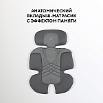 анатомические матрасик и подушка Memory foam обеспечат не только комфорт, но и мягкую защиту, а также идеальное положение тела малыша на протяжении всей поездки. Вкладыши в матрасике вынимаются по мере роста малыша.