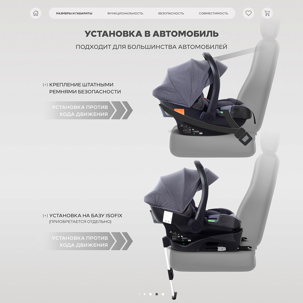 для надежной фиксации автолюльки дополнительно можно приобрести базу isofix с телескопической опорной ногой, увеличивающей устойчивость