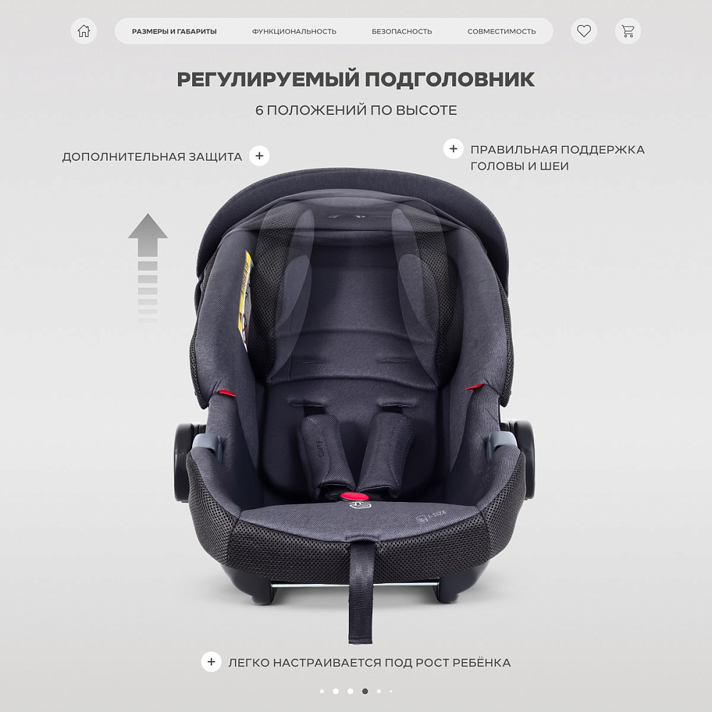 Детское автокресло RANT CARRY PRO (40-87 см) покорит вас: возможностью установки на базу ISOFIX ; возможностью установки на каркас коляски + адаптеры (модели Zoom, Tilda, Nexus); инновационной формой капора; регулировкой подголовника по росту; мягкими комфортными вкладышами, вынимаемыми по мере роста крохи; тактильно приятными гипоаллергенными чехлами из премиум-ткани.
