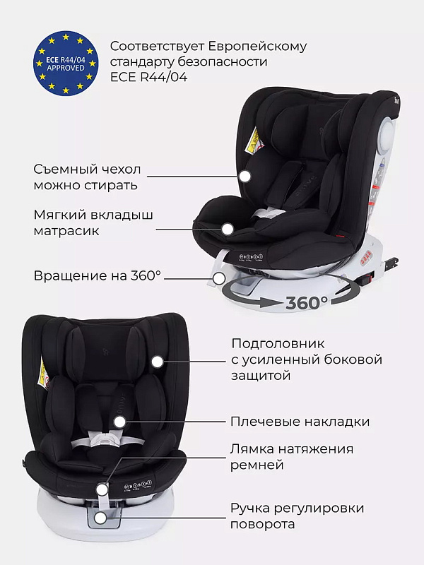 Универсальное автокресло последнего поколения, дополненное уникальной поворотной базой. Для вашего удобства: поверните зафиксированное автокресло на 90 градусов (чтобы оно располагалось боком); посадите/достаньте ребенка; установите кресло так, как требуется (по ходу/против хода движения).