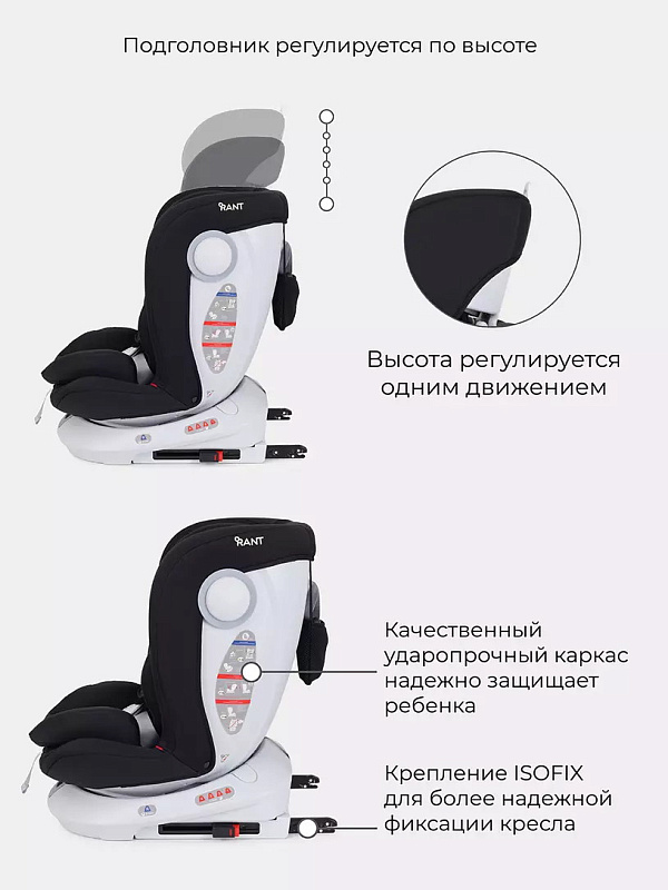 Автокресло rant drive растет вместе с ребенком. Подходит детям с рождения и до 12 лет. Главная особенность автокресла в уникальной поворотной платформе, которую достаточно один раз надежно зафиксировать с помощью isofix и далее спокойно поворачивать на все 360 градусов. Таким образом, облегчается смена положения кресла - по ходу/против хода; значительно проще посадить/достать малыша, ведь кресло можно развернуть боком, а затем выставить либо по ходу, либо против хода движения.