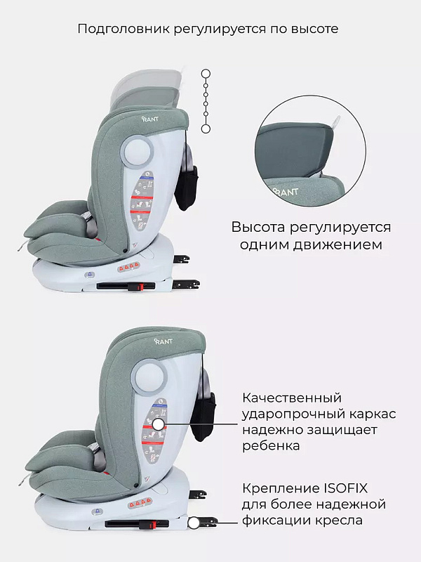 Автокресло rant drive растет вместе с ребенком. Подходит детям с рождения и до 12 лет. Главная особенность автокресла в уникальной поворотной платформе, которую достаточно один раз надежно зафиксировать с помощью isofix и далее спокойно поворачивать на все 360 градусов. Таким образом, облегчается смена положения кресла - по ходу/против хода; значительно проще посадить/достать малыша, ведь кресло можно развернуть боком, а затем выставить либо по ходу, либо против хода движения.