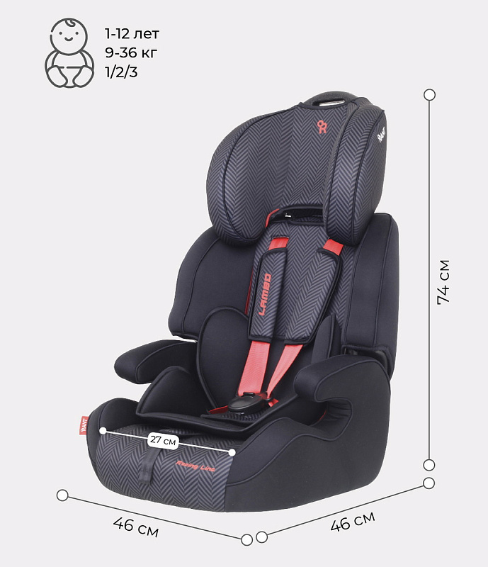 - Rant Lambo Racing — универсальное автокресло для детей от 9 до 36 кг (от 9 месяцев до 12 лет)