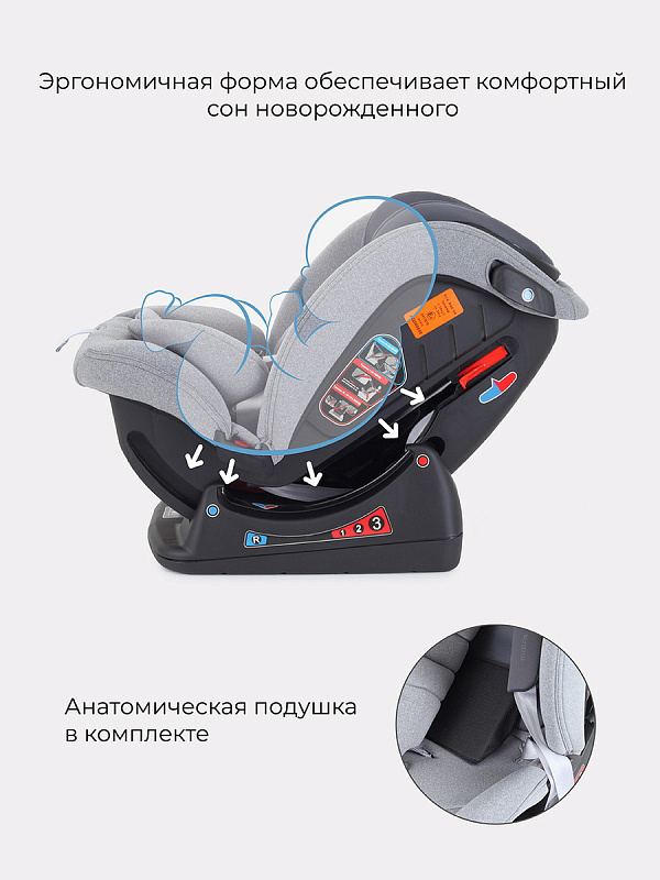 - в комплектацию входит анатомическая треугольная подушка-вкладыш, необходимая крохе от 0 до 6 месяцев. С помощью этого аксессуара чаша автокресла