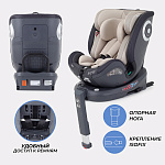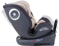 Для удобства посадки и высадки применен механизм поворота на 360°, разблокируемый при нажатии клавиши, расположенной на платформе автокресла.
