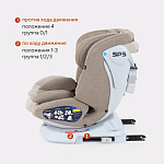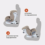 Новая разработка - автокресло для всех групп (0/1/2/3), которое обеспечит безопасные и комфортные поездки вашему ребенку. В комплектацию входит анатомическая подушка-вкладыш, необходимая крохе от 0 до 6 месяцев. С помощью этого аксессуара чаша автокресла выравнивается, комфорт достигается благодаря уменьшению угла наклона внутренней части автокресла. Создается практически ровная поверхность для новорожденного. Уникальность модели так же в поворотном блоке (с помощью которого автокресло спокойно вращается вокруг своей оси, поэтому его удобно установить как по ходу движения, так и против). Еще одна особенность - потрясающая ткань чехлов. Специальная пропитка не даст впитаться влаге и грязи, при этом на ощупь чехлы невероятно приятные. Кресло имеет большие внутренние размеры, а для комфорта малышей предусмотрен специальный вкладыш и мягкий подголовник для дополнительной защиты головы и шеи. 5-ти точечные ремни безопасности регулируются по высоте вместе с подголовником. Модель имеет несколько наклонов спинки, в том числе почти горизонтальное положение для грудничков. Вся обивка легко снимается для стирки.