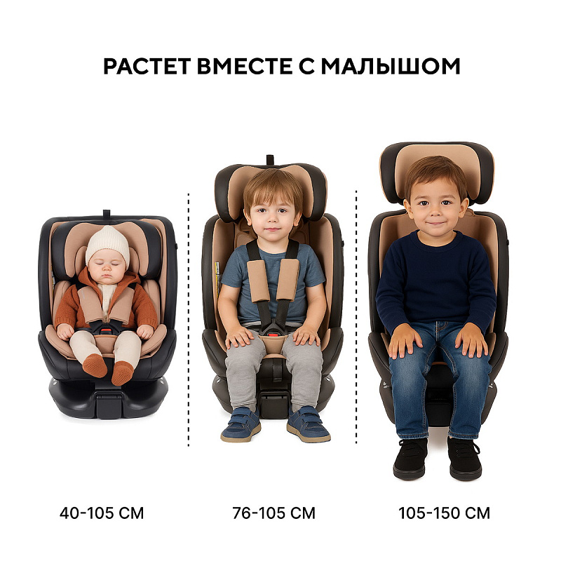 автокресло растет вместе с маленьким пассажиром. Подходит детям с рождения и до 12 лет (от 40 см до 150 см).