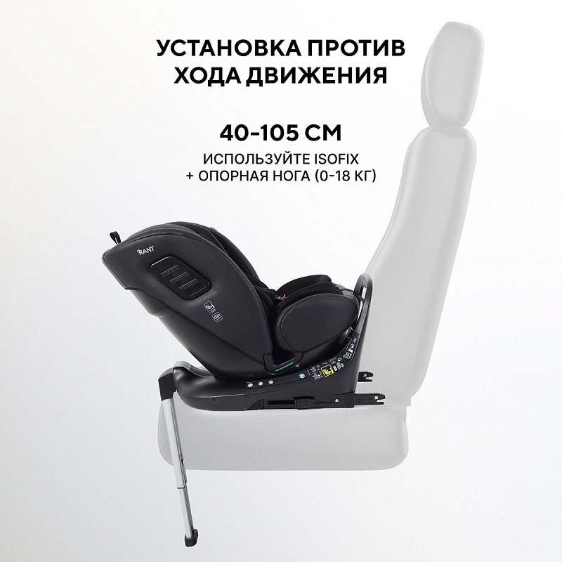 40–105 см (0-18 кг): против хода движения ISOFIX + опорная нога