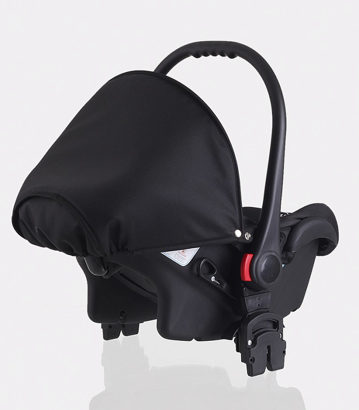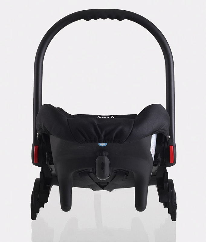 - от яркого солнышка и осадков кроху закроет надежный капюшон, который удобно крепится к автолюльке с помощью кнопочек
