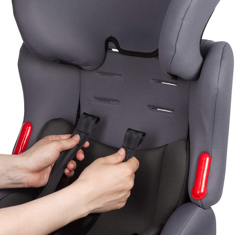 Подголовник с 6-ступенчатой регулировкой по высоте позволяет подстроить кресло под рост ребенка. Специальная ортопедическая спинка, мягкий вкладыш и накладки внутренних ремней повышают уровень комфорта во время поездки. Внутренние ремни регулируются по высоте и адаптируются под рост ребенка, зимнюю и летнюю одежду.