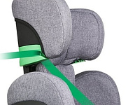 Угол наклона спинки автокресла адаптируется под наклон сидения автомобиля. Клинообразная форма подголовника. За счет клинообразной формы подголовника достигается максимальный комфорт и безопасность в дороге. Съемный подстаканник.