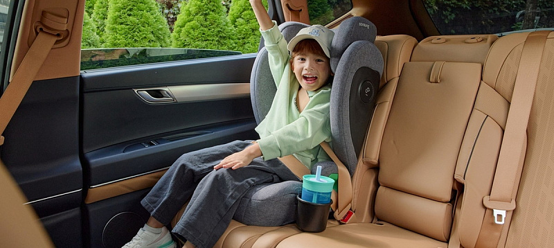 Угол наклона спинки автокресла адаптируется под наклон сидения автомобиля. Клинообразная форма подголовника. За счет клинообразной формы подголовника достигается максимальный комфорт и безопасность в дороге. Съемный подстаканник.