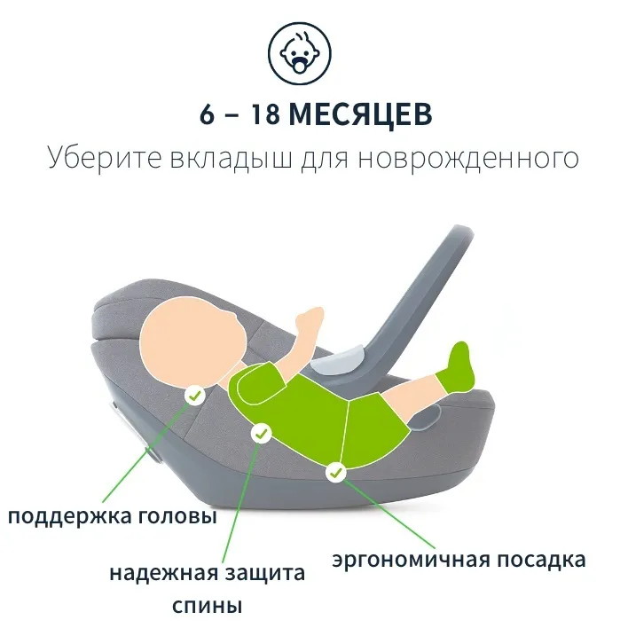 - Корпус люльки в форме ракушки и снижающий нагрузки материал EPP, использованный в подложке обеспечивает комфорт и безопасность
