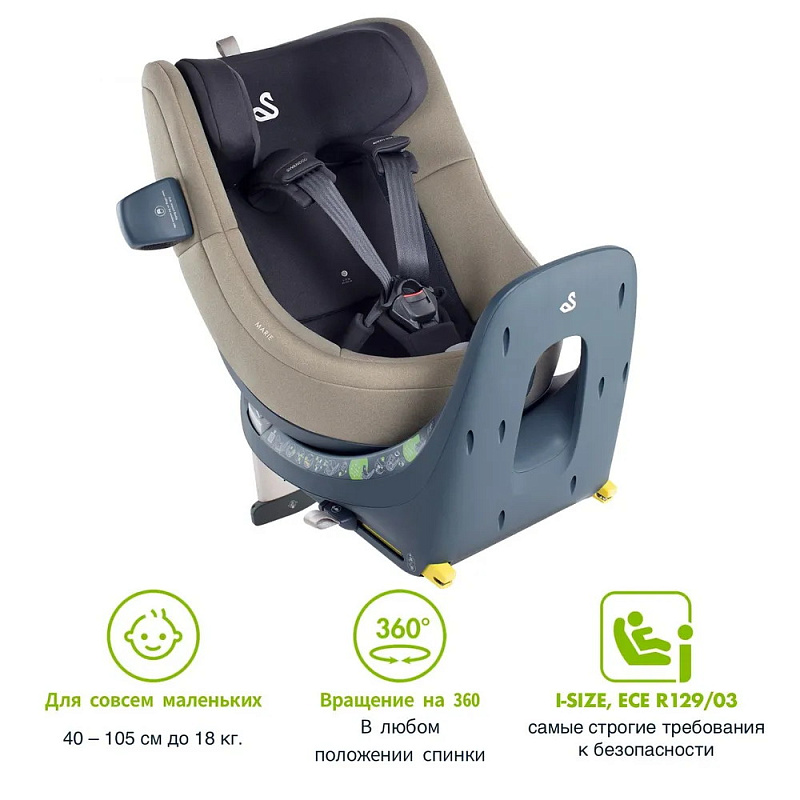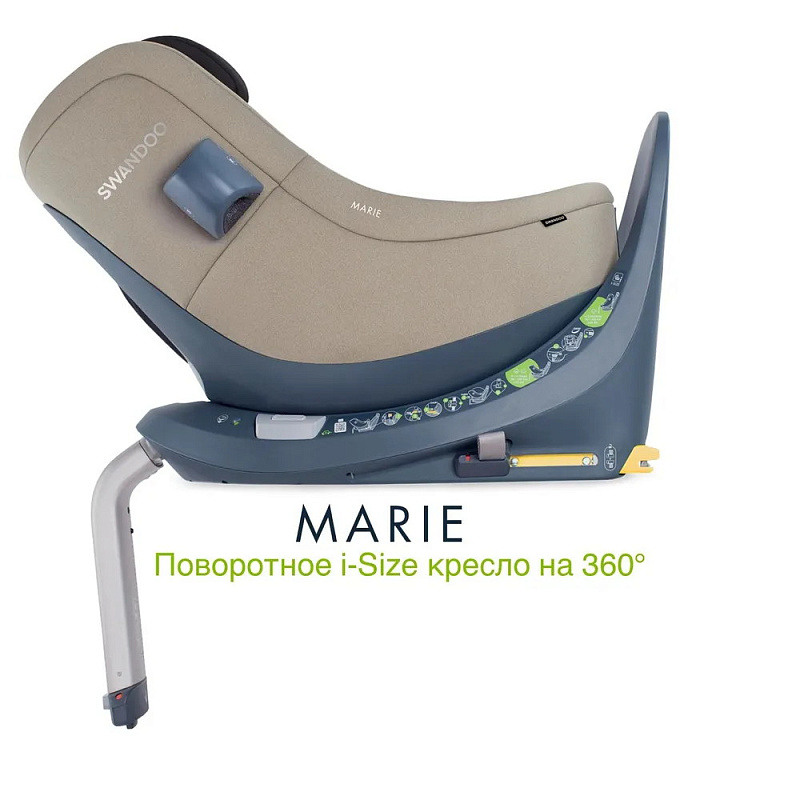 Swandoo Marie i-Size поворотное автокресло на 360 градусов. Соответствует новым стандартам безопасности I-SizeR129 I-size обеспечивающие максимальную безопасность и невероятный комфорт ребенку с рождения до 5 лет. Благодаря возможности вращения чаши на 360 градусов сиденье автокресла можно устанавливать как против, так и по направлению движения автомобиля.