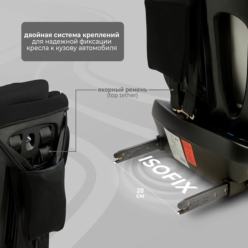 Способы крепления в автомобилеавтомобильный штатный ремень, якорный ремень, база ISOFIX