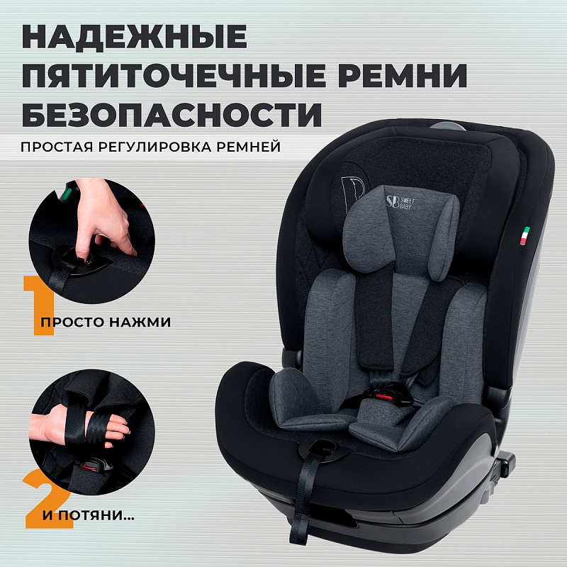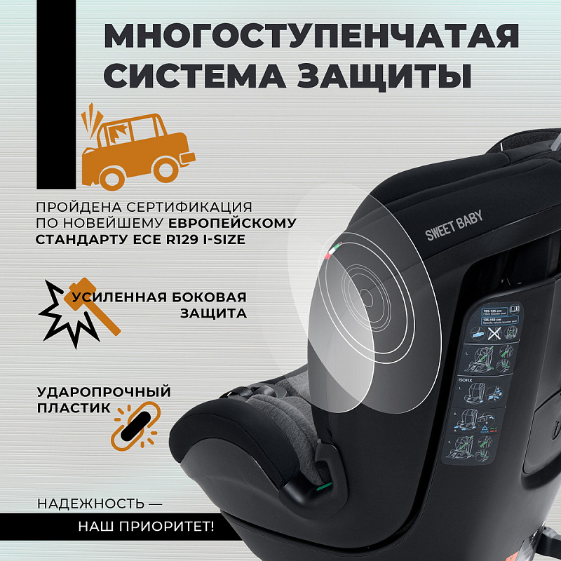 Представляем вам автокресло для детей Sweet Baby Gravity, созданное для обеспечения максимальной безопасности и комфорта вашего малыша в пути. Это кресло станет надежным спутником вашего ребенка с раннего возраста (с 15 месяцев) до подросткового периода (до 12 лет) (группа 1/2/3).