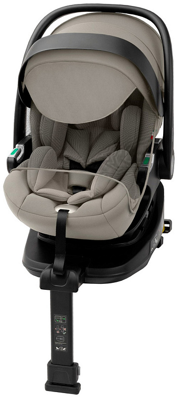 - База i-Size, которая идет в комплекте, превращает автолюльку в полноценное поворотное автокресло на 360 градусов, тем самым упрощая процесс посадки и пристегивания ребенка.