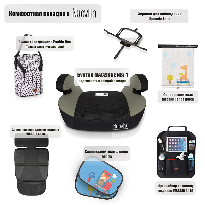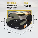 Обеспечить безопасную перевозку подросшего ребенка поможет бустер Maczione NB-1. Это удерживающее устройство разработано с учетом анатомических особенностей детей в возрасте от 6 до 12 лет: его ширина и глубина позволяют маленькому пассажиру удобно разместиться в автомобиле, а высота рассчитана на правильное расположение штатных ремней безопасности относительно тела ребенка. Дополнительный комфорт эксплуатации обеспечивают мягкий тканевый чехол и толстый слой пенополиуретанового наполнителя. Безопасность устройства доказана европейскими испытаниями и подтверждена Министерством транспорта Чешской Республики.
