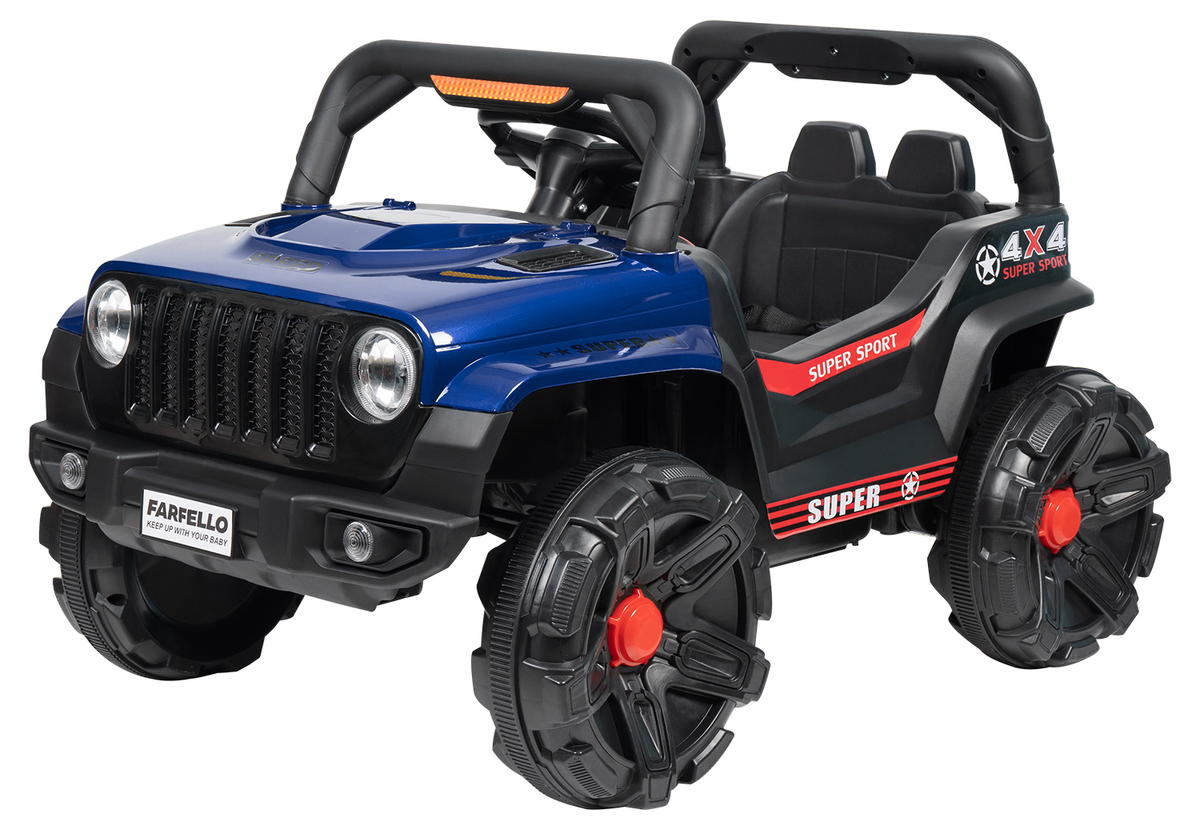 Электромобиль Farfello SR916 для ребят, которые скорее хотят быть как родители и самостоятельно водить авто! Джип-электромобиль – идеальный транспорт для получения первого водительского опыта. Ребенок катается и тренирует внимательность, ловкость и координацию. Прогулки становятся еще веселее, если включить фары и выбрать мелодию.