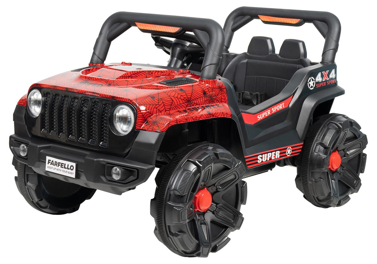 Электромобиль Farfello SR916 для ребят, которые скорее хотят быть как родители и самостоятельно водить авто! Джип-электромобиль – идеальный транспорт для получения первого водительского опыта. Ребенок катается и тренирует внимательность, ловкость и координацию. Прогулки становятся еще веселее, если включить фары и выбрать мелодию.