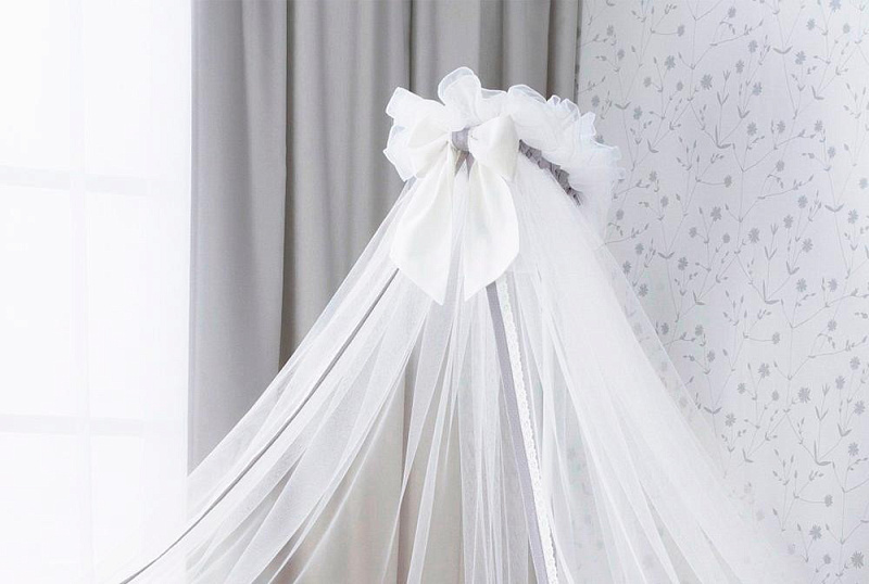 за счет своей длины в пол полностью накрывает кроватку и защищает малыша от пыли и света