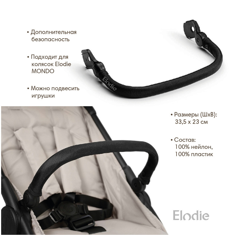 Бампер для коляски Elodie MONDO - важный аксессуар для детского транспорта. Кроме того, что что он обеспечивает дополнительную безопасность, когда ребенок находится в коляске, за него удобно держаться маленькими ручками.