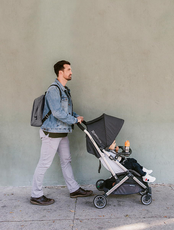- имеет поворотно-откидной механизм, чтобы сажать малыша в коляску было удобно;