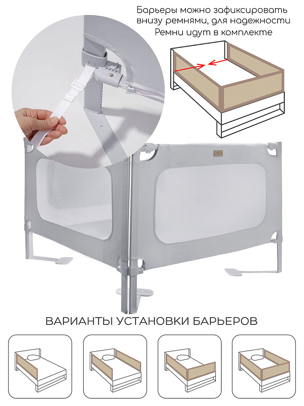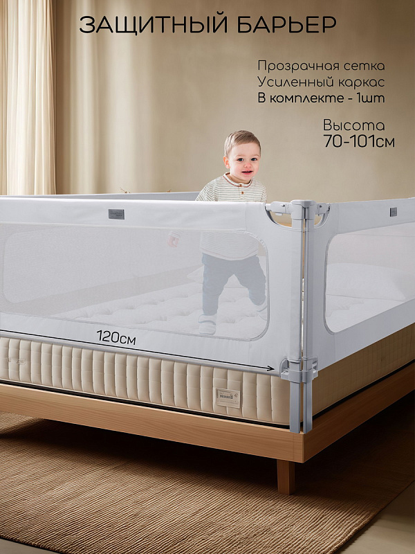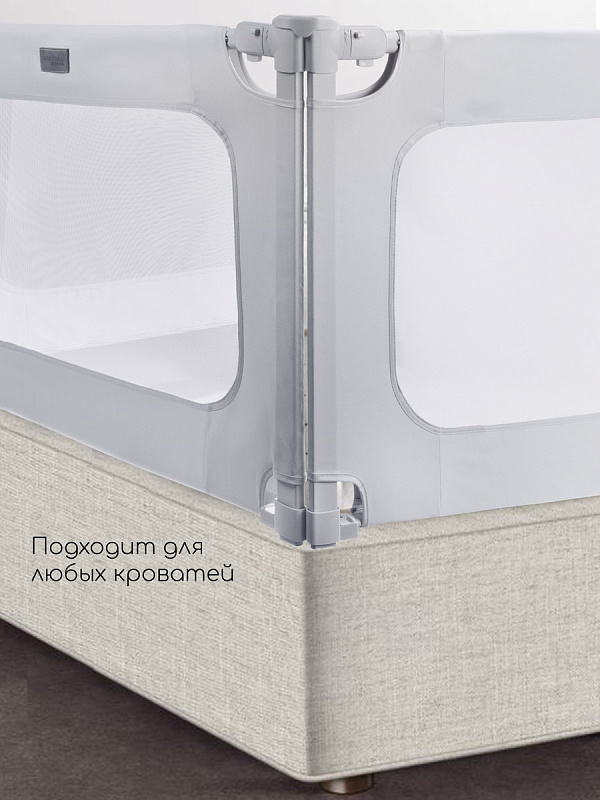 Барьер для кровати Amarobaby Caveo — безопасность и комфорт для вашего малыша! Защитите ребенка от случайного падения с кровати с надежным детским барьером Amarobaby Caveo — идеальным решением для родителей, которые ценят простоту, качество и безопасность. Защитный барьер легко устанавливается за минуты, устойчив к раскачиванию даже при активных движениях малыша, оснащен прочной сеткой и приятной на ощупь тканью, которая не шуршит и не разбудит вашего малыша. Верхняя планка барьера защищена мягким материалом. Надежное крепление и усиленный стальной каркас гарантируют устойчивость, а опущенный бортик не мешает удобно сесть на кровать. Ножки барьера регулируются по высоте и идеально подстраиваются под высоту вашего матраса. Перегородка для детей обеспечит спокойствие вам и защиту ребенку. Защитное ограждение для новорожденных устанавливается под матрас и крепится к каркасу кровати. Модель универсальна, подойдет для мальчиков и девочек. Барьер для детей выполнен в универсальных цветах, подойдет в любой интерьер.
