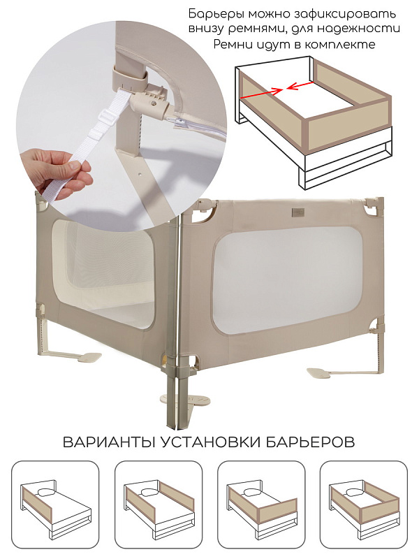 Барьер для кровати Amarobaby Caveo — безопасность и комфорт для вашего малыша! Защитите ребенка от случайного падения с кровати с надежным детским барьером Amarobaby Caveo — идеальным решением для родителей, которые ценят простоту, качество и безопасность. Защитный барьер легко устанавливается за минуты, устойчив к раскачиванию даже при активных движениях малыша, оснащен прочной сеткой и приятной на ощупь тканью, которая не шуршит и не разбудит вашего малыша. Верхняя планка барьера защищена мягким материалом. Надежное крепление и усиленный стальной каркас гарантируют устойчивость, а опущенный бортик не мешает удобно сесть на кровать. Ножки барьера регулируются по высоте и идеально подстраиваются под высоту вашего матраса. Перегородка для детей обеспечит спокойствие вам и защиту ребенку. Защитное ограждение для новорожденных устанавливается под матрас и крепится к каркасу кровати. Модель универсальна, подойдет для мальчиков и девочек. Барьер для детей выполнен в универсальных цветах, подойдет в любой интерьер.
