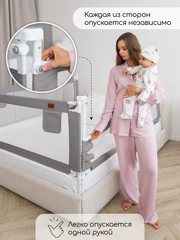 Барьер для кровати AmaroBaby Linear 200 см серый