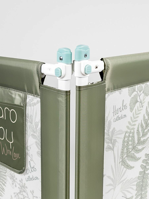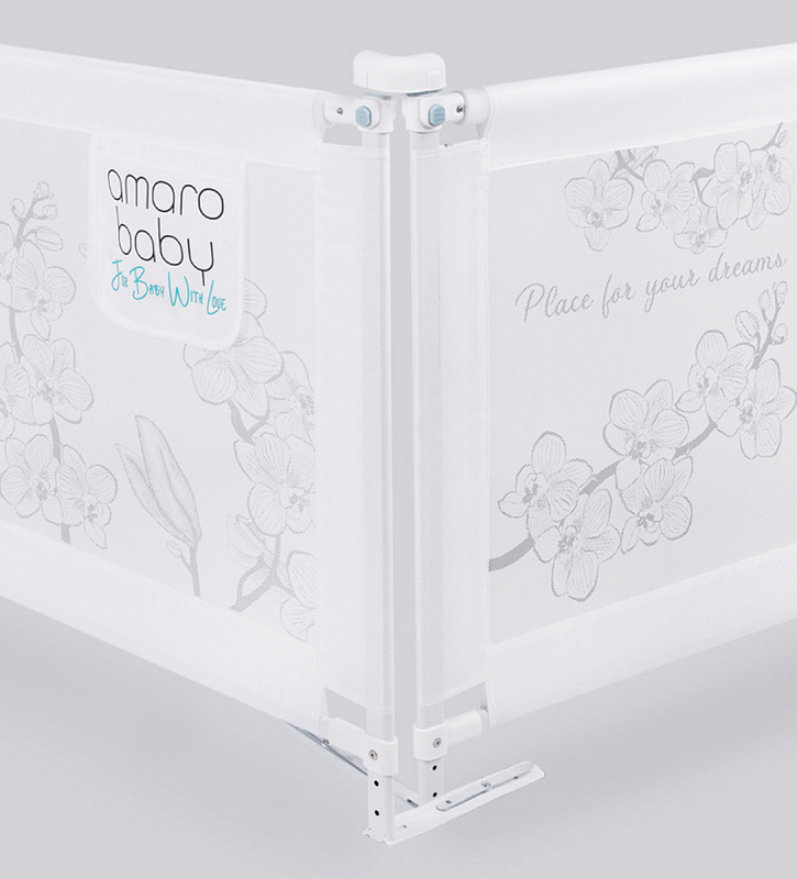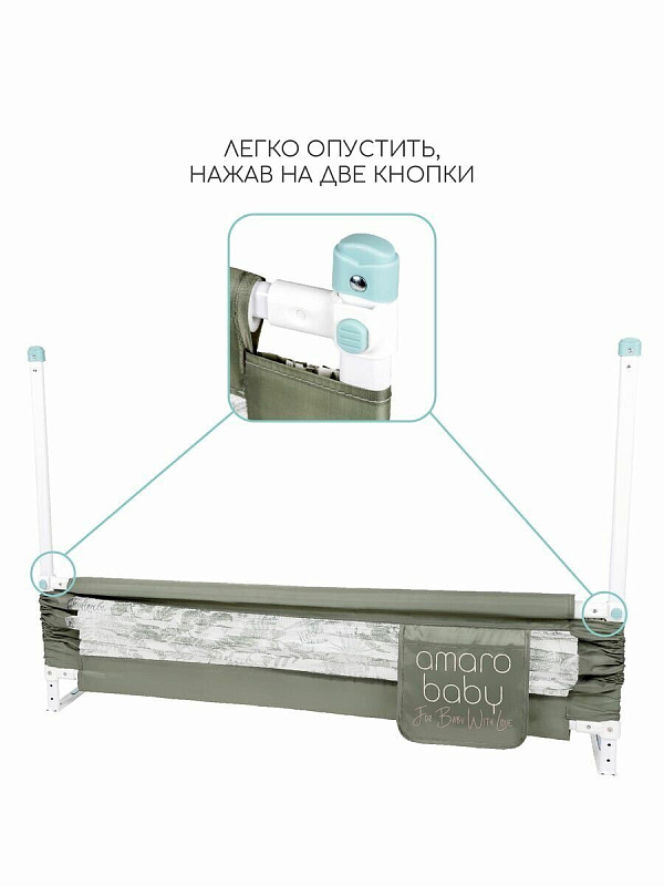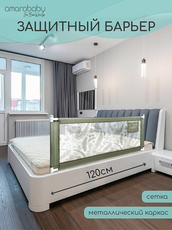 Барьер защитный от AMAROBABY. Это защитное ограждение для безопасности малыша. Бортик позволяет предотвратить падение во время сна или бодрствования. Длина барьера 120 см (для удобства установки есть погрешность в меньшую сторону), высотой от 66 до 80 см. Устанавливается под матрас и крепится к каркасу кровати. При необходимости можно приобрести несколько бортиков и соединить их между собой, в комплектации идет соединительная крышка. Металлический каркас обеспечивает надежность и безопасность. Бортик удобен в эксплуатации за счет складного механизма, его легко опустить, нажав на две кнопки. При необходимости ограждение для детей можно разобрать и взять с собой. Ткань барьера представляет собой сетку, что позволяет ребенку свободно дышать. Барьер поставляется в разобранном виде и прост в установке.