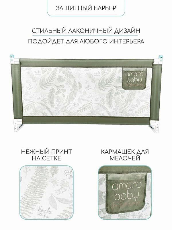 Барьер для кровати AmaroBaby Safety of dreams 150 см оливковый