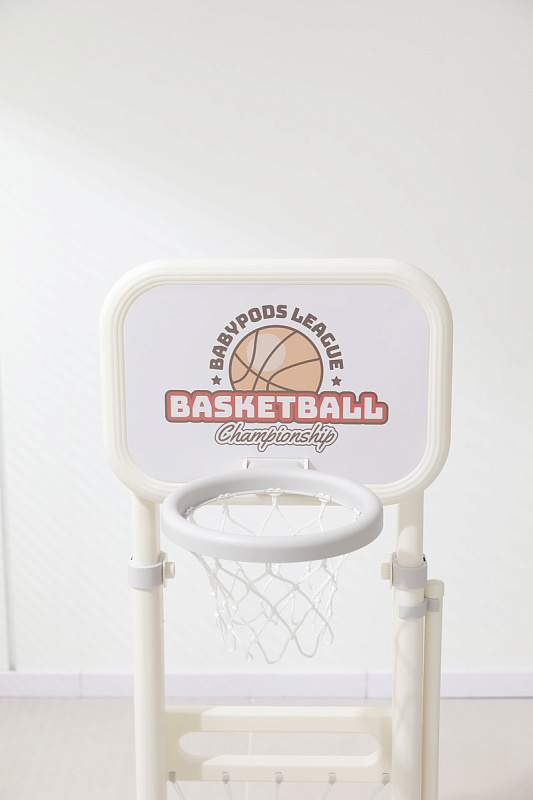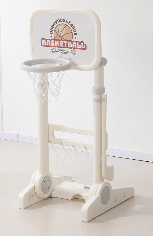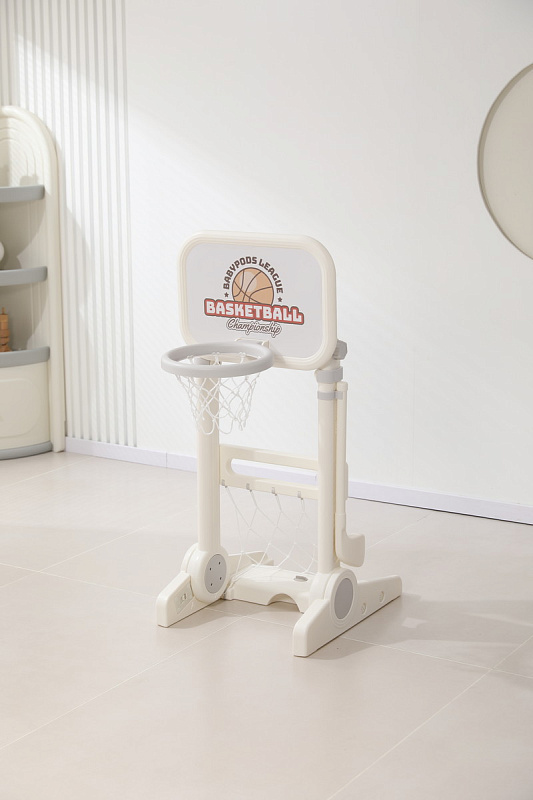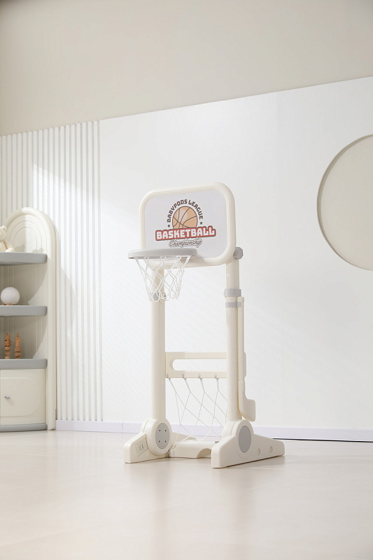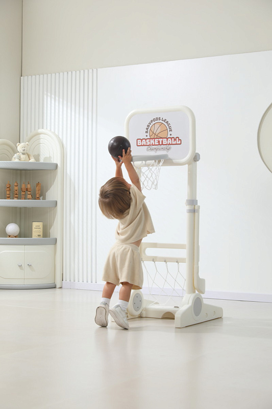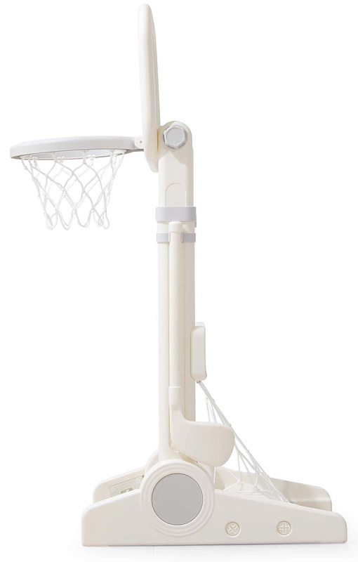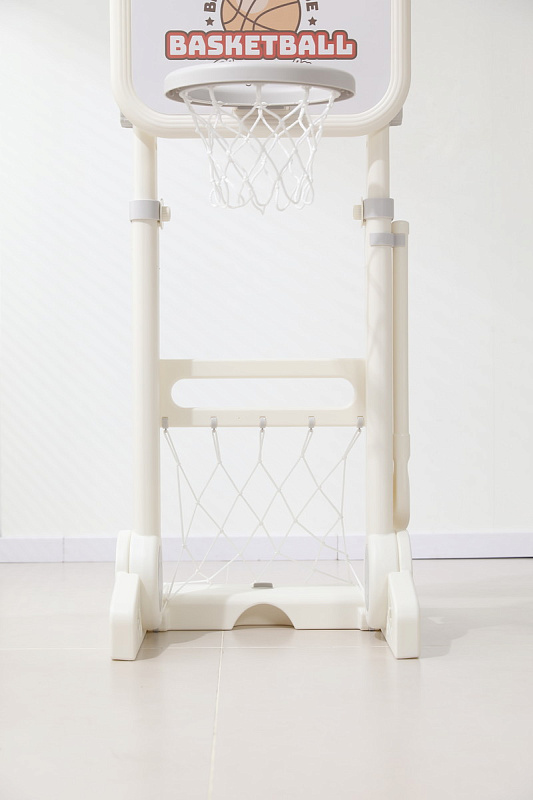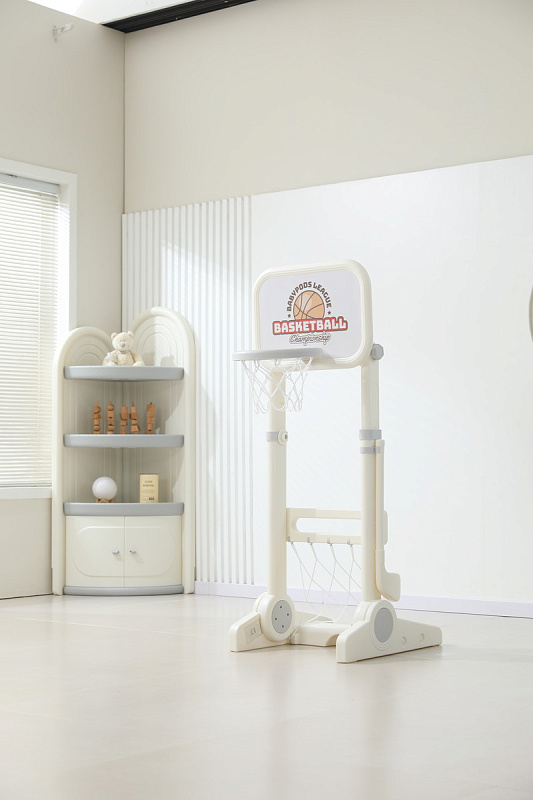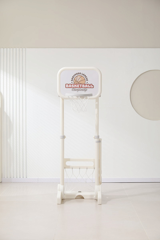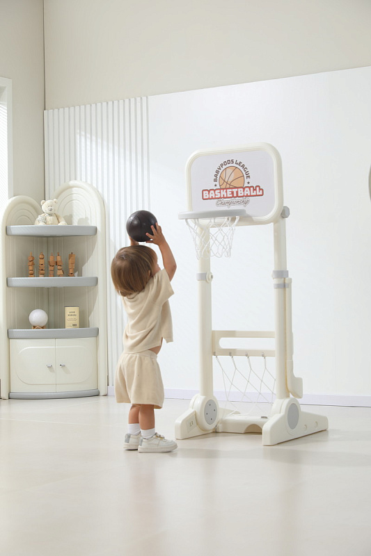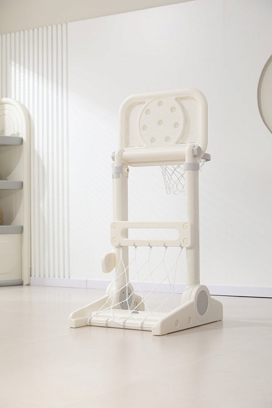 Игровая стойка выполнена из качественного пищевого пластика, отличающегося прочностью и долговечностью. Этот материал устойчив к воздействию влаги и солнечных лучей, что позволяет использовать комплекс как внутри помещения, так и на открытом воздухе. Компактная конструкция легко складывается, не занимая много пространства, что особенно актуально для небольших квартир и домов.