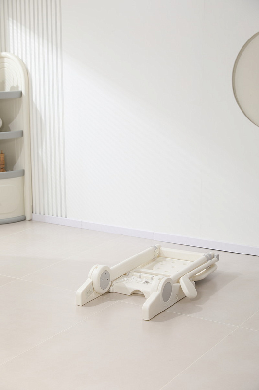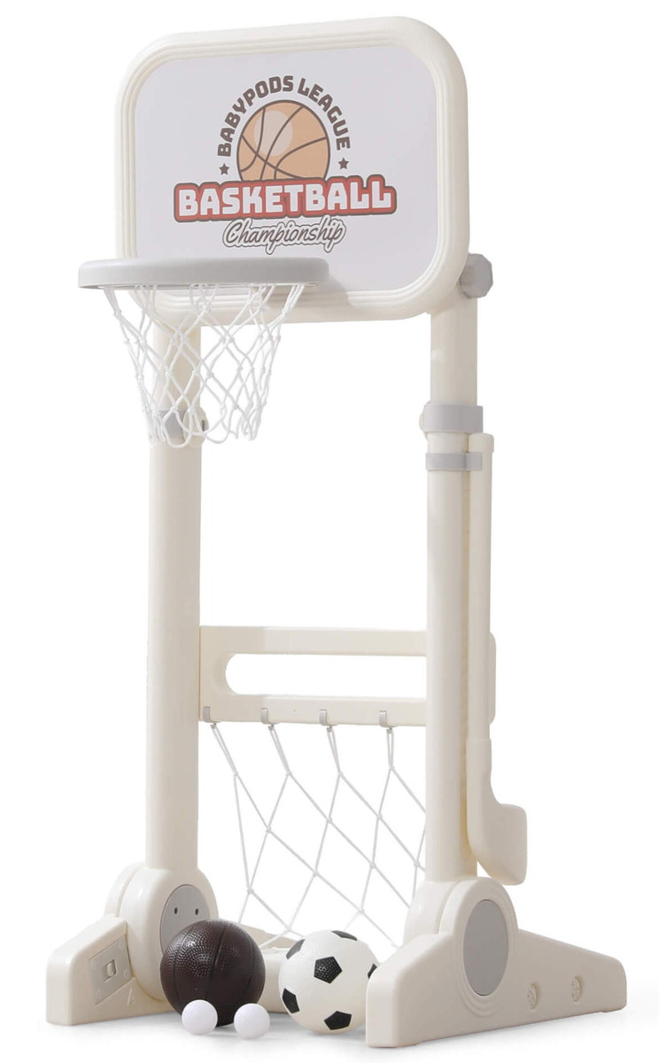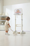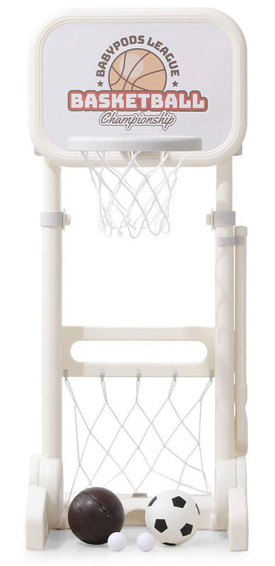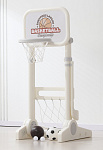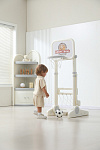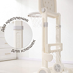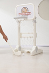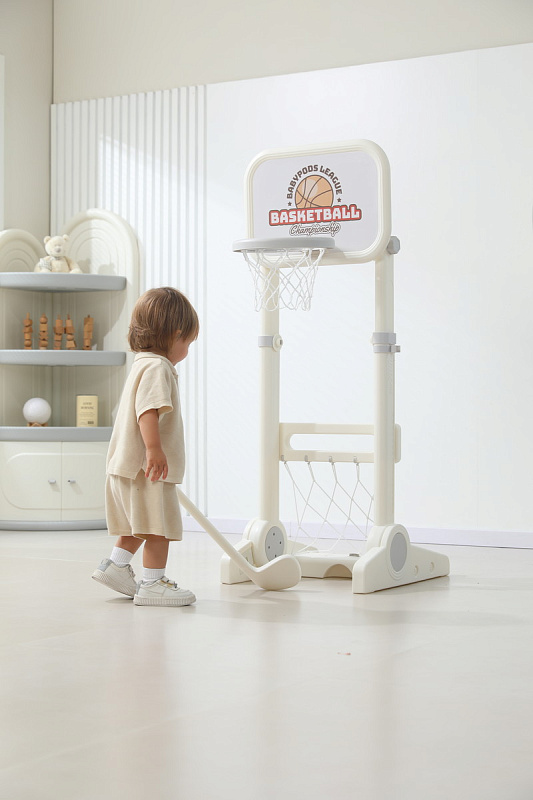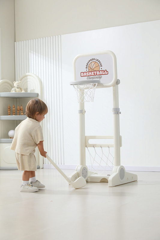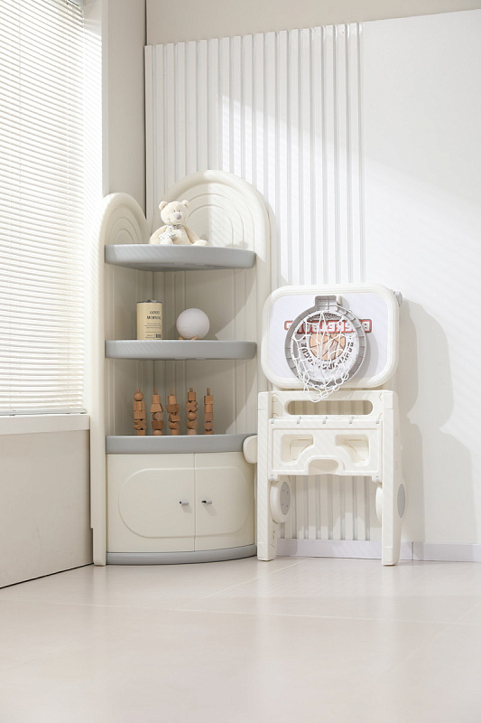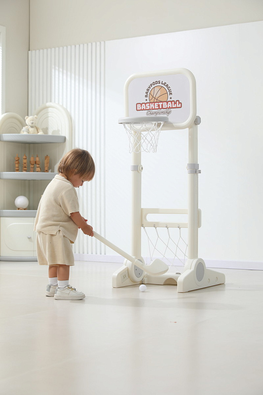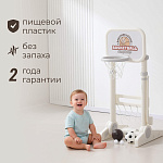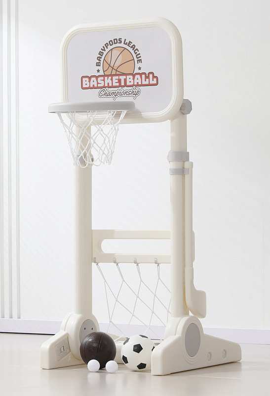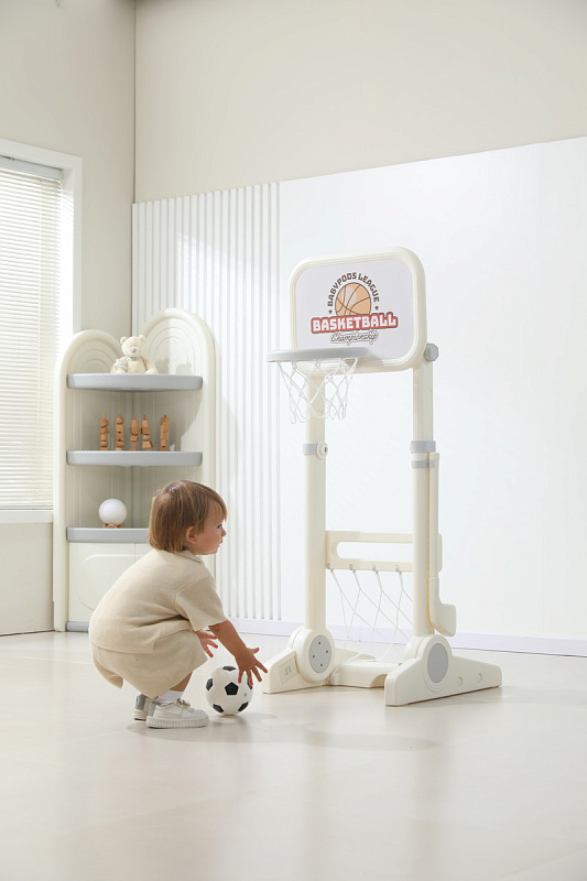 Игровая стойка выполнена из качественного пищевого пластика, отличающегося прочностью и долговечностью. Этот материал устойчив к воздействию влаги и солнечных лучей, что позволяет использовать комплекс как внутри помещения, так и на открытом воздухе. Компактная конструкция легко складывается, не занимая много пространства, что особенно актуально для небольших квартир и домов.