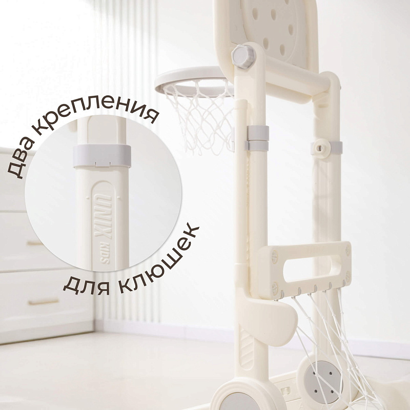 Родители получают удобное решение для организации игровой площадки для своего ребёнка, способствующее развитию физических способностей и формированию здорового образа жизни. С комплексом UNIX Kids Champion White 3 в 1 вы обеспечите своему ребенку активный отдых и создадите благоприятные условия для занятий спортом. Многофункциональность, надежность и удобство делают стойку идеальным решением для семейного досуга и спортивных тренировок, вдохновляя детей на достижение новых высот в спорте и укрепляя здоровье.