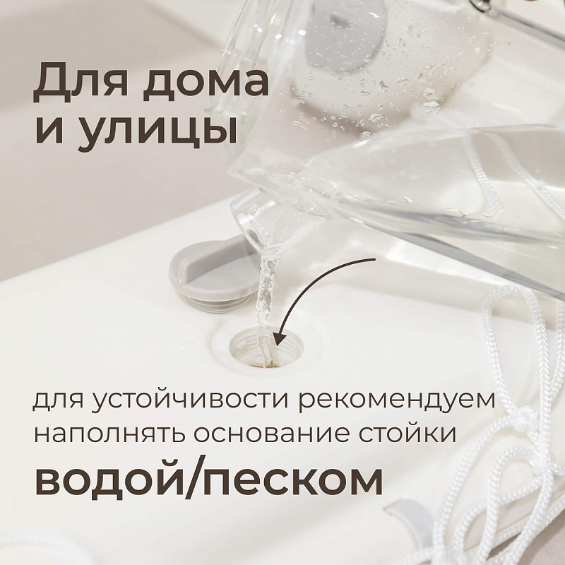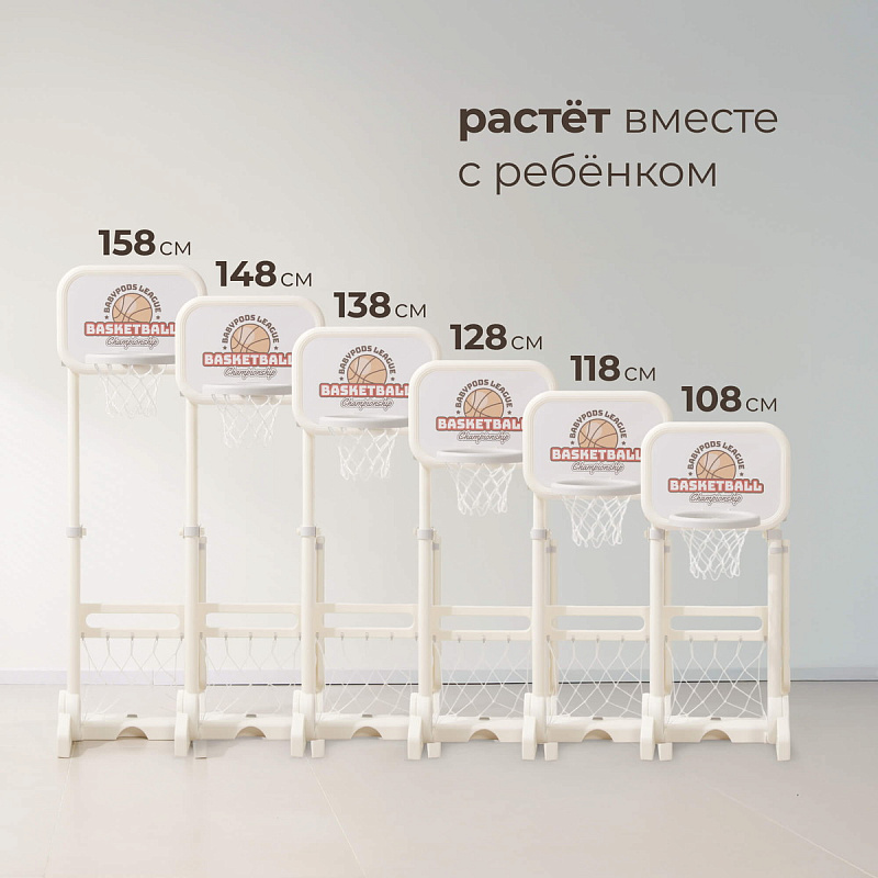 Особое внимание уделено деталям конструкции детской баскетбольной стойки. Диаметр кольца составляет 22 см. Высота стойки регулируется от 108 до 158 см, благодаря чему она подойдет детям разного возраста и роста, обеспечив тем самым комфортные условия игры даже для малышей. Размеры основания стойки составляют 47х57 см, что обеспечивает устойчивость и безопасность при игре. Для дополнительной фиксации в игровой зоне рекомендуем наполнять основание стойки водой или песком.