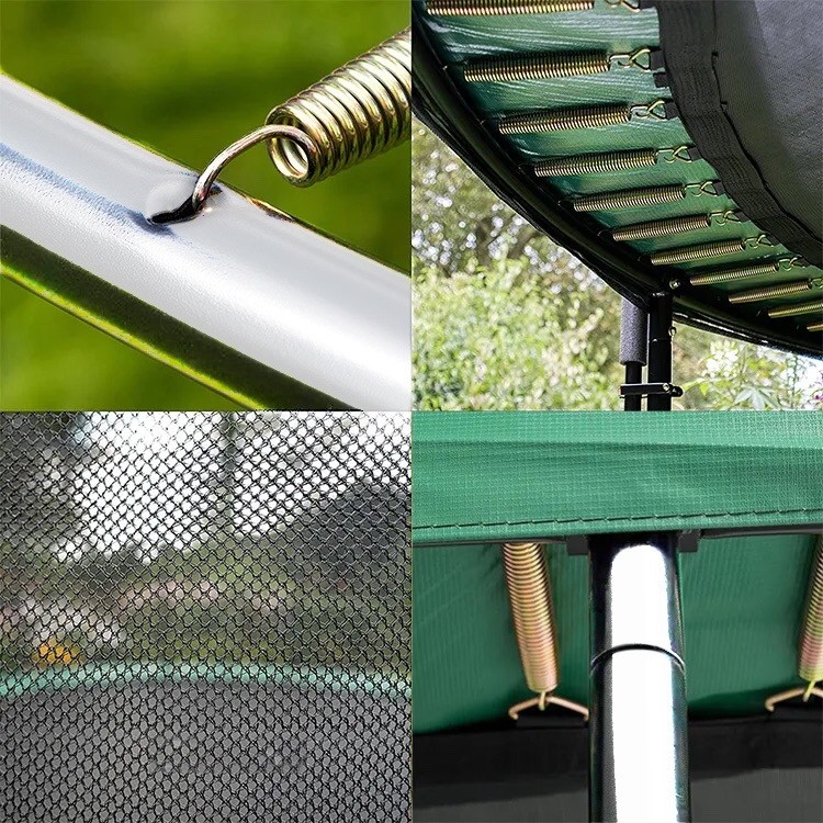 - Защитная сеть входит в комплект всех моделей батутов диаметром более 1,4 м, в данной модели сеть проходит по внутреннему диаметру и разделяет прыжковое полотно от пружин, что обеспечивает дополнительную безопасность ваших детей, она надежно крепится к прыжковому полотну, ВСЕ металлические части батута находятся за пределами досягаемости;
