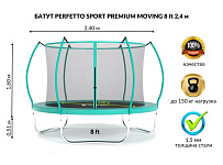 Батут с защитной сеткой Perfetto Sport Premium Moving 8 диаметр 2,4 м зеленый