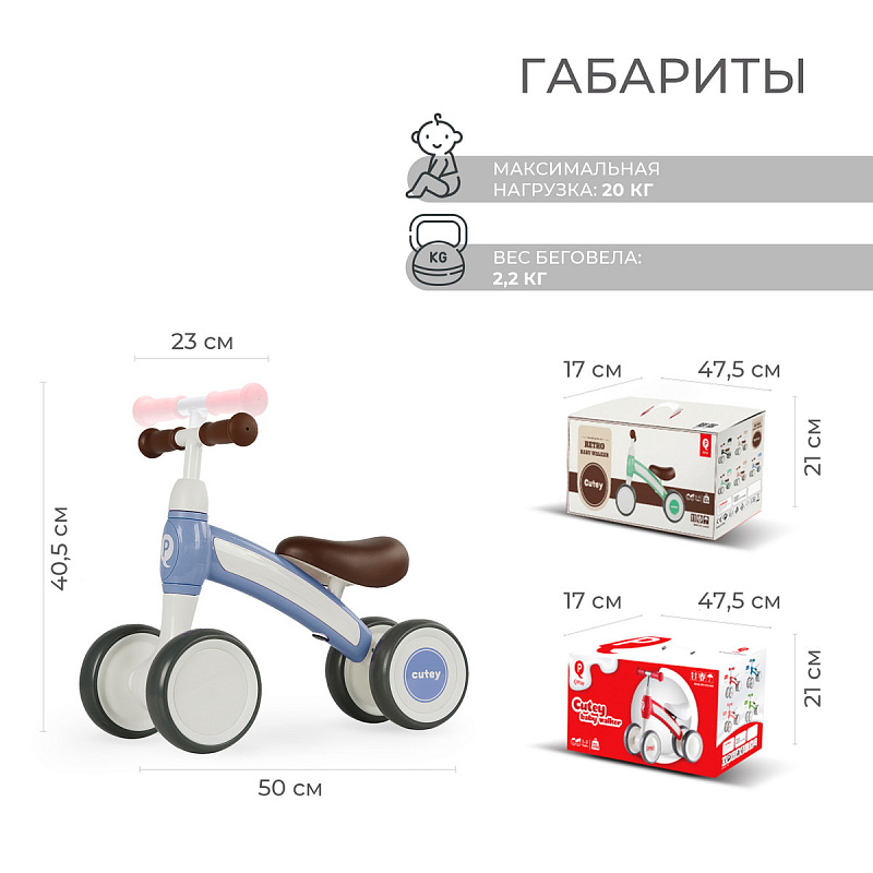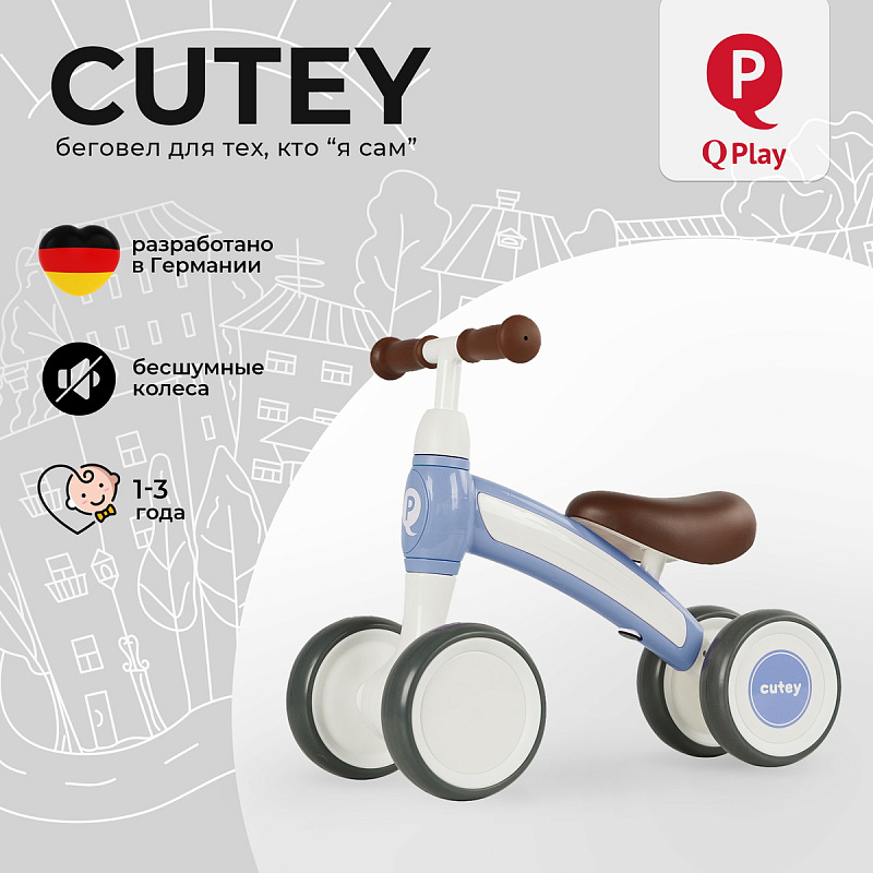 QPlay CUTEY – это очень легкий и удобный детский транспорт с 4 устойчивыми колесами и мягким сиденьем. Непрокалываемые колеса сделаны из EVA материала, поэтому они отлично прилегают ко всем поверхностям и не издают шума. Стильный дизайн и комфорт в использовании оценят как малыши, так и их родители. Беговел отлично тренирует координацию, моторику, тем самым подготовливая ребенка к самостоятельной езде на велосипеде.