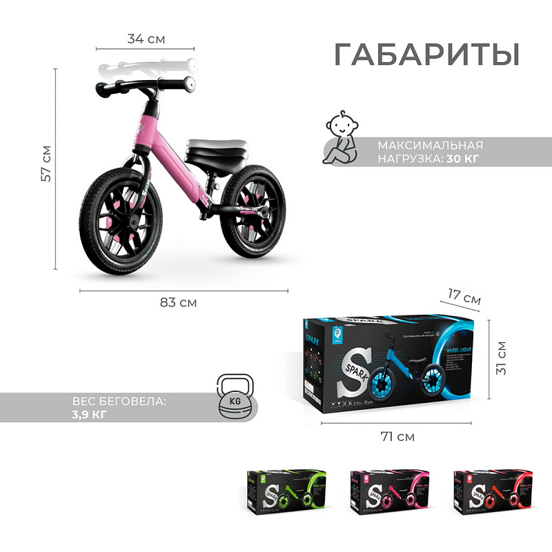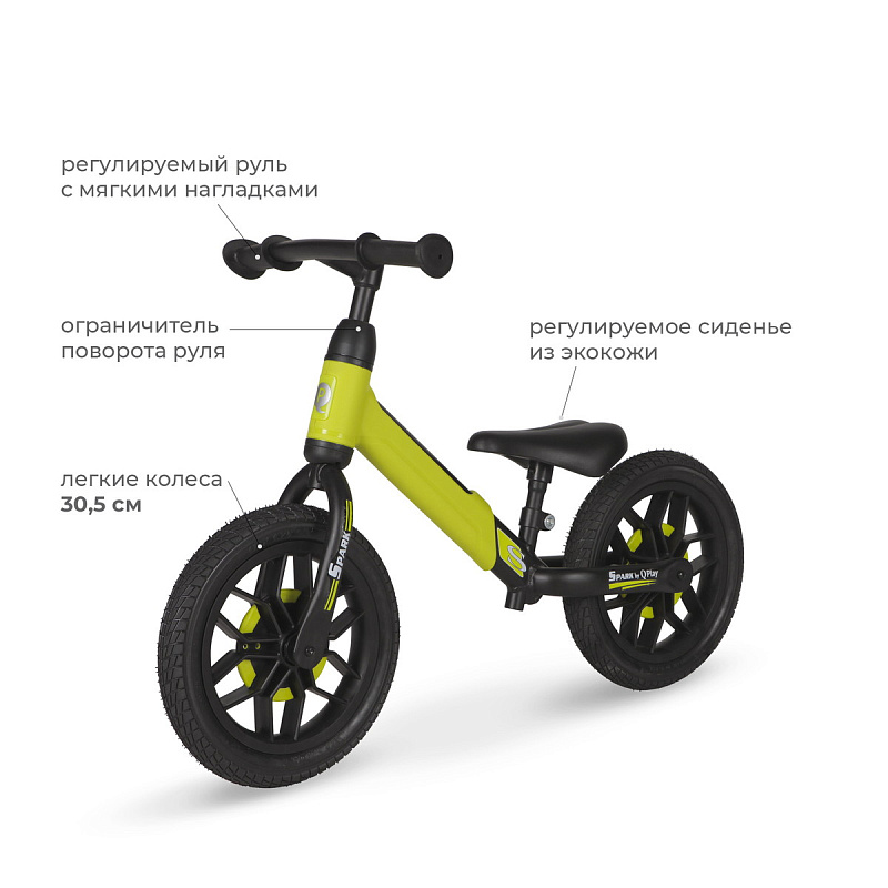 - Благодаря регулируемому сиденью и рулю, Qplay Spark подстроится под рост вашего ребенка;