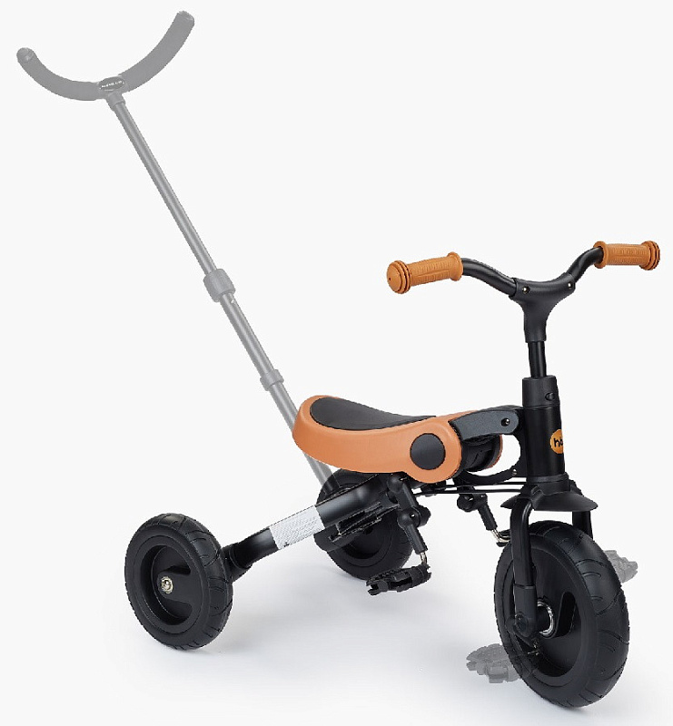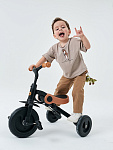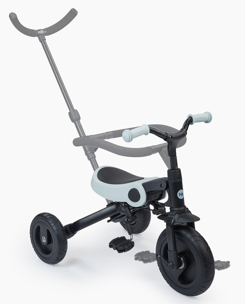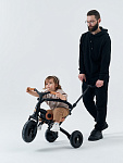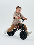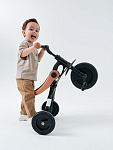 Беговел-трансформер VESTER растет вместе с ребенком. Есть 4 варианта трансформации: каталка для самых маленьких, трёхколесный велосипед с установленной ручкой для родителей, трёхколесный велосипед и беговел для самостоятельной езды. Для безопасности в режиме каталки есть съёмный бампер и режим холостого хода у педалей. Съёмная ручка для родителей телескопическая: минимальная высота от пола 69 см, а максимальная 94 см. Сиденье подходит для мальчиков и девочек, а у руля удобные прорезиненные ручки. Поворот переднего колеса ограничен 30 градусами. Простой механизм трансформации и небольшие габариты в сложенном виде позволят брать VESTER в дорогу.