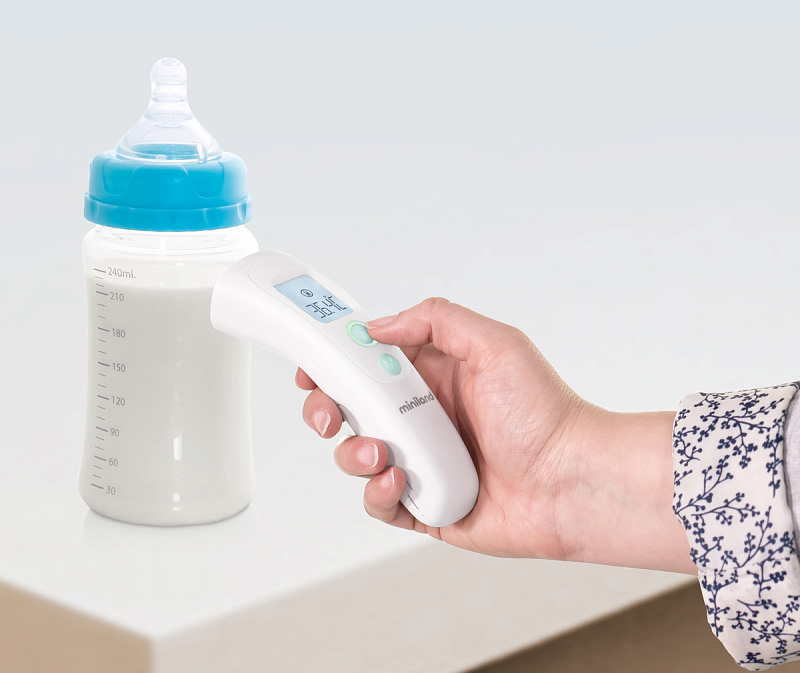 Бесконтактный термометр Thermoadvanced Easy позволяет измерять температуру малыша, не прерывая его сон, а также контролировать температуру нагрева детского питания, воды в ванночке, воздуха в помещении и предметов.